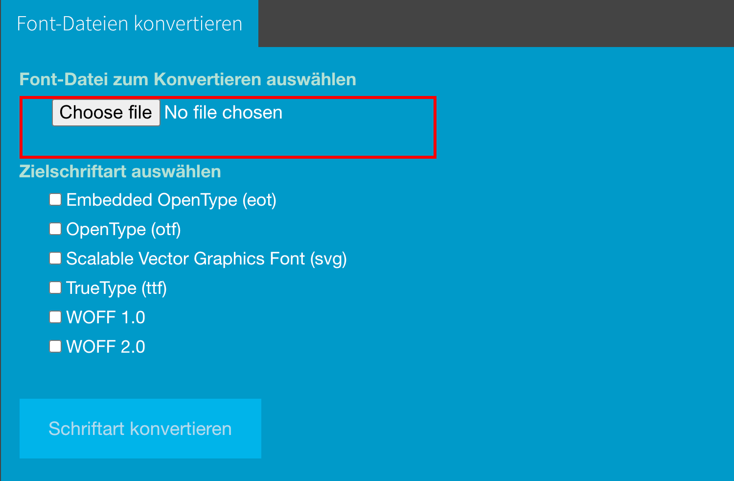 Derzeit unterstützt fontConverter.io OTF, TTF, SVG, WOFF (1 & 2) und EOT (nur als Ziel).